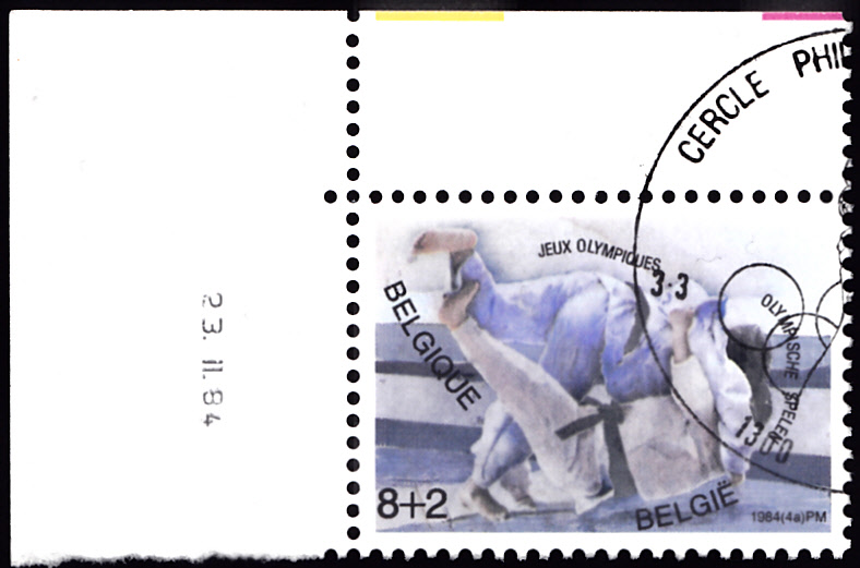 Aus Belgien kommt diese Marke (MiNr 2171) zu den Olympischen Spielen 1984 mit einer Kampfszene beim Judo.