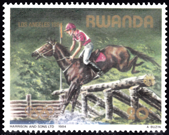 In einer Serie ist in Ruanda diese Marke (MiNr 1275) mit einem Reiter beim Vielseitigkeitsreiten (früher Military) erschienen.