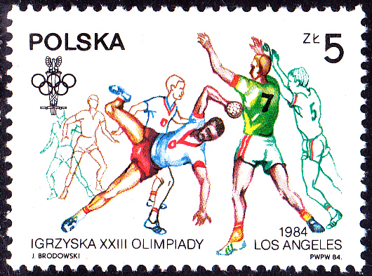 Aus einer Serie aus Polen zu den Olympischen Spielen in Sarajewo und Los Angeles kommt diese Marke (MiNr 2913) mit einer Spielszene beim Handball.