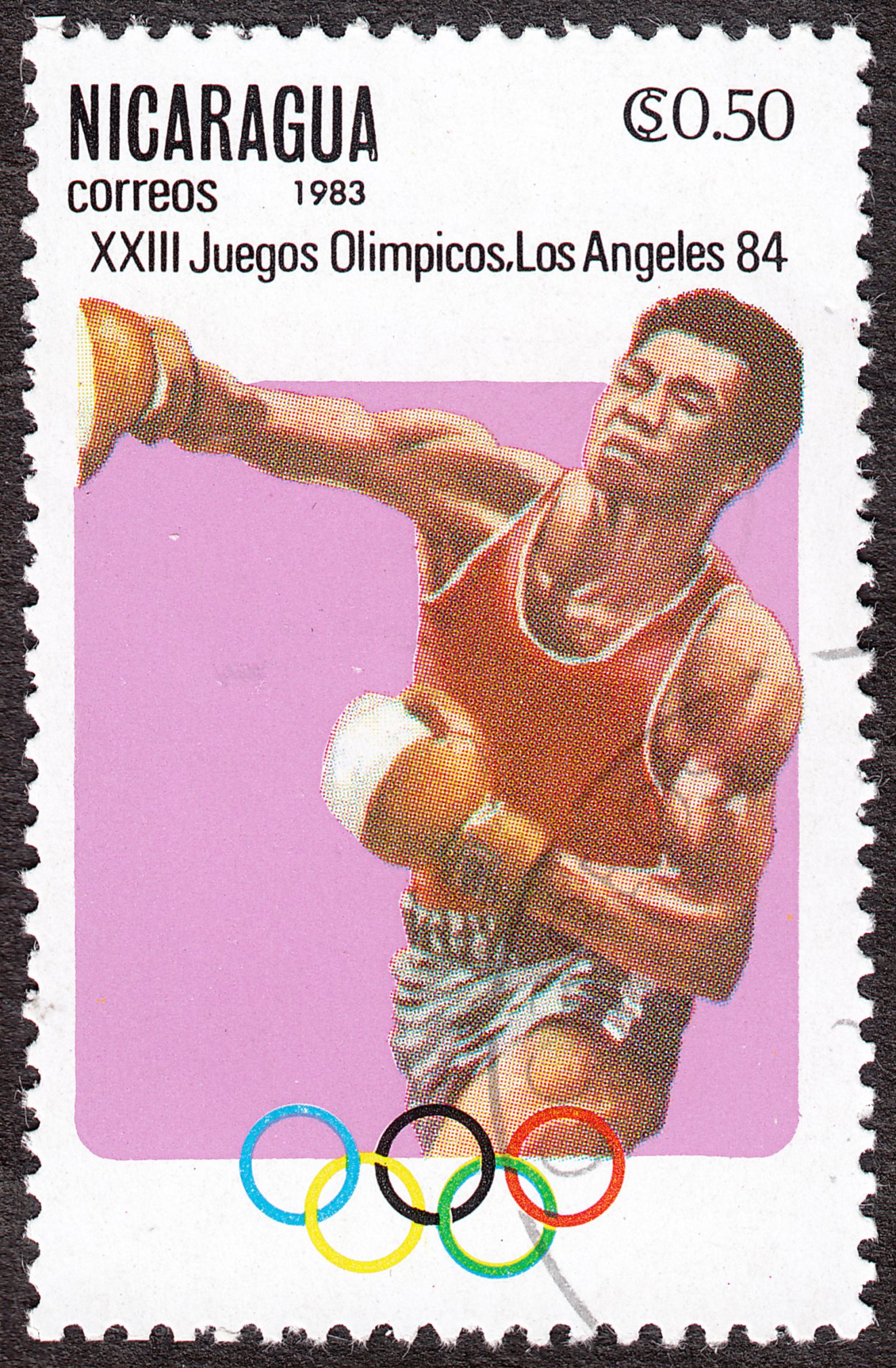 Bereits am 31.01.1983, also recht zeitig zu den XXIII. Olympischen Spielen 1984 in Los Angeles erschien in Nicaragua diese Marke mit dem Motiv "Boxen", die als MiNr. 2346 katalogisiert wurde: