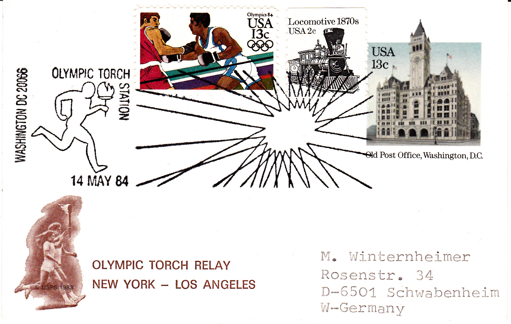 Am 14.5.1984 verlief der Fackellauf durch Washington, wie uns dieser Sonderstempel nachweist.