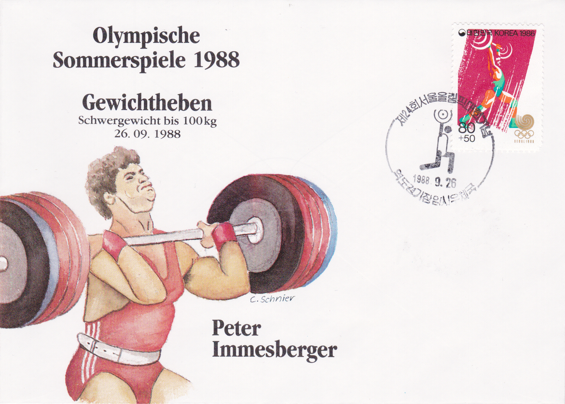 Hier zeige ich einen entsprechenden Beleg mit dem Sonderstempel "Gewichtheben" vom 29.9.1988.