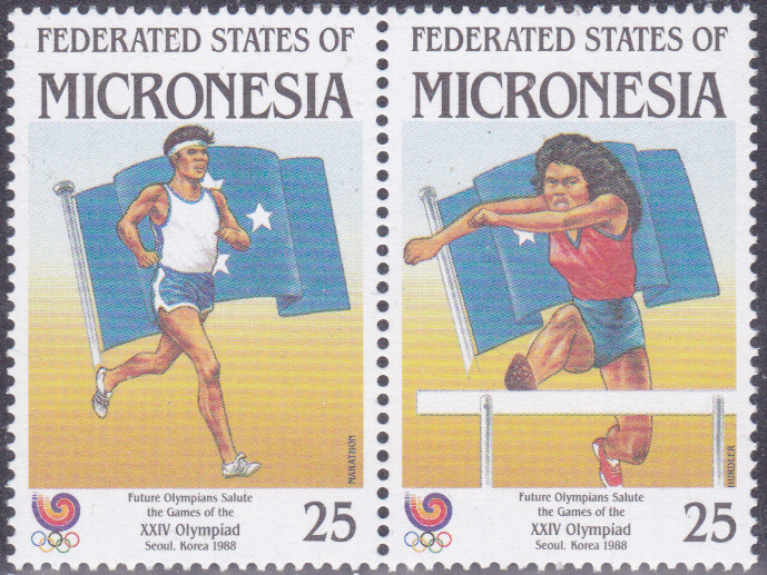 In Mikronesien ist in einer Serie zu den Sommerspielen 1988 diese Marke zu 25 C (MiNr 93) mit einem Marathonläuzfer erschienen.