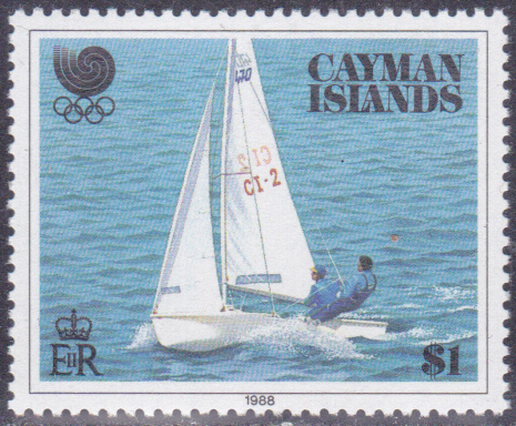 Die Serie der Kaiman-Inseln ist mit dieser Marke (MiNr 710) mit einem Segelboot komplett.