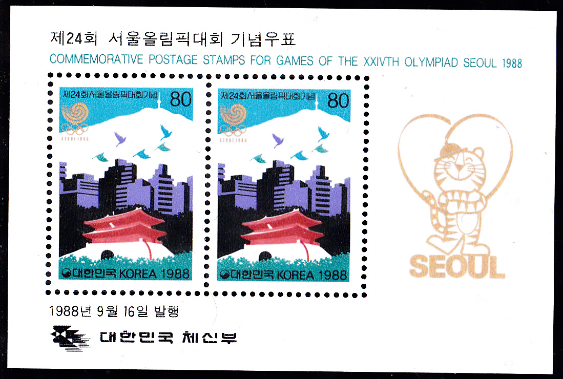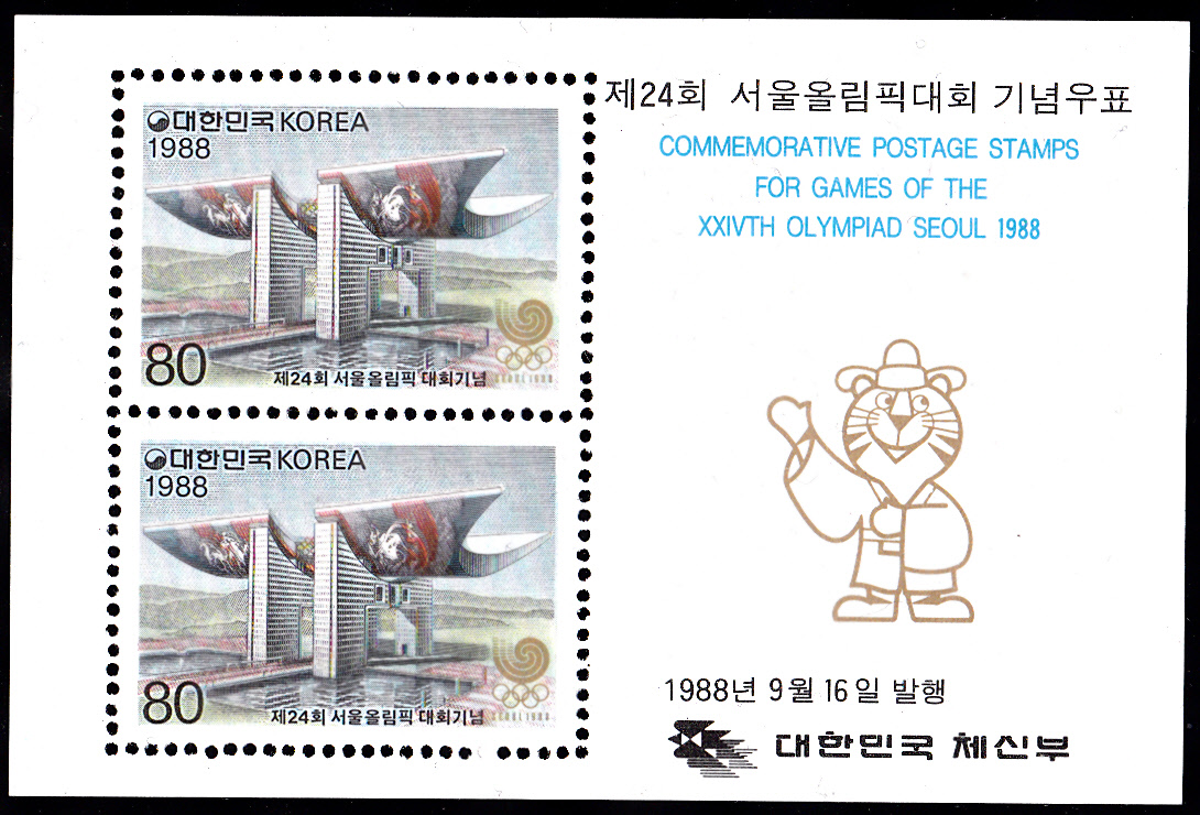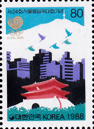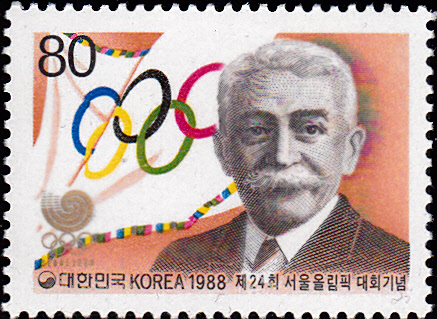 Zu den Olympischen Spielen 1988 in Seoul erschien am 16.9.1988 in Korea-Süd noch eine Serie mit vier Marken. Auf der ersten Marke (MiNr 1567) wurde Baron Pierre de Coubertin (1862-1937) der Gründer der Olymp. Spiele der Neuzeit abgebildet.