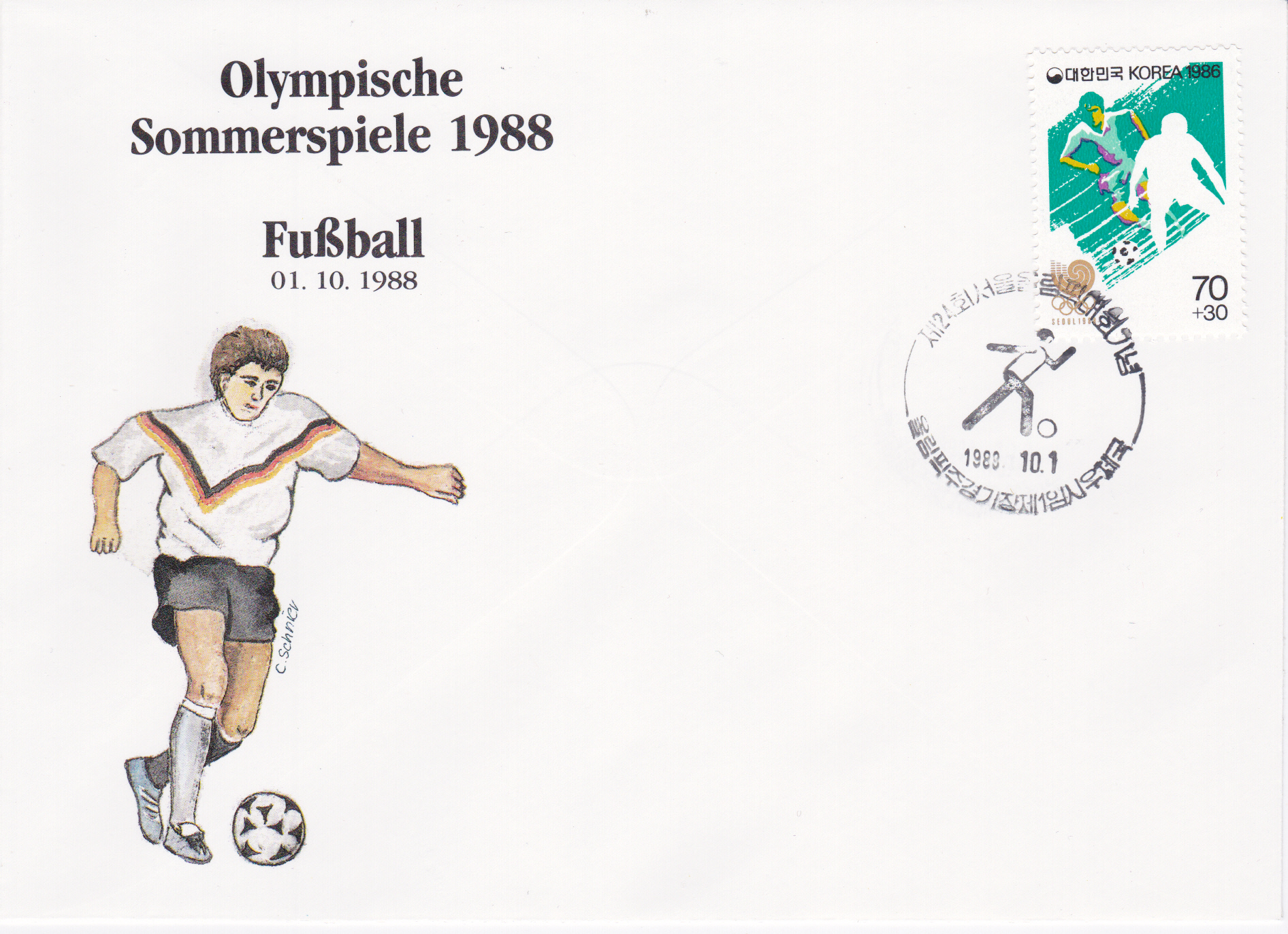 Zu Dokumentation kann hier dieser Umschlag mit dem Sonderstempel "Fußball" vom 1.10.2988 herangezogen werden.