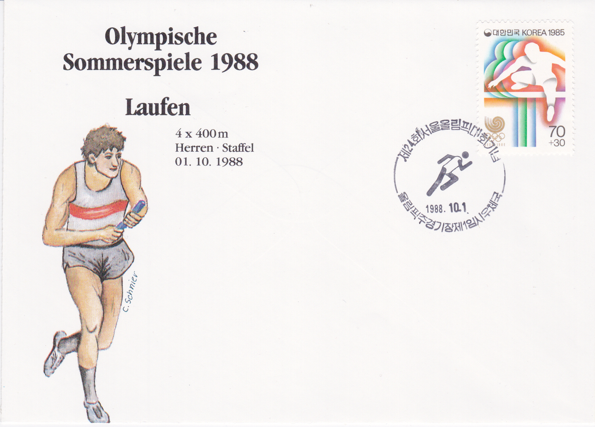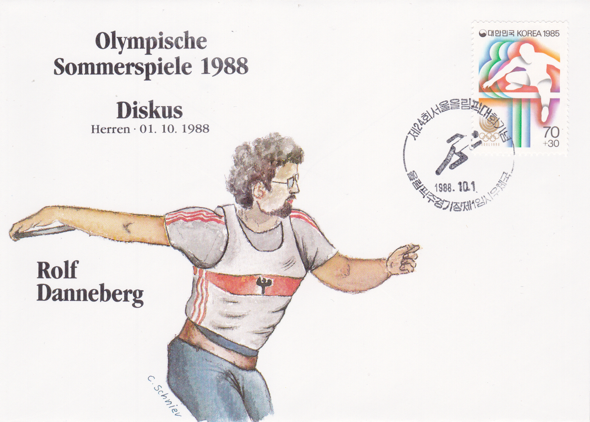 Dieser Beleg mit dem Sonderstempel "Leichtathletik" vom 1.10.1988 soll an diese Bronzemedaille erinnern.