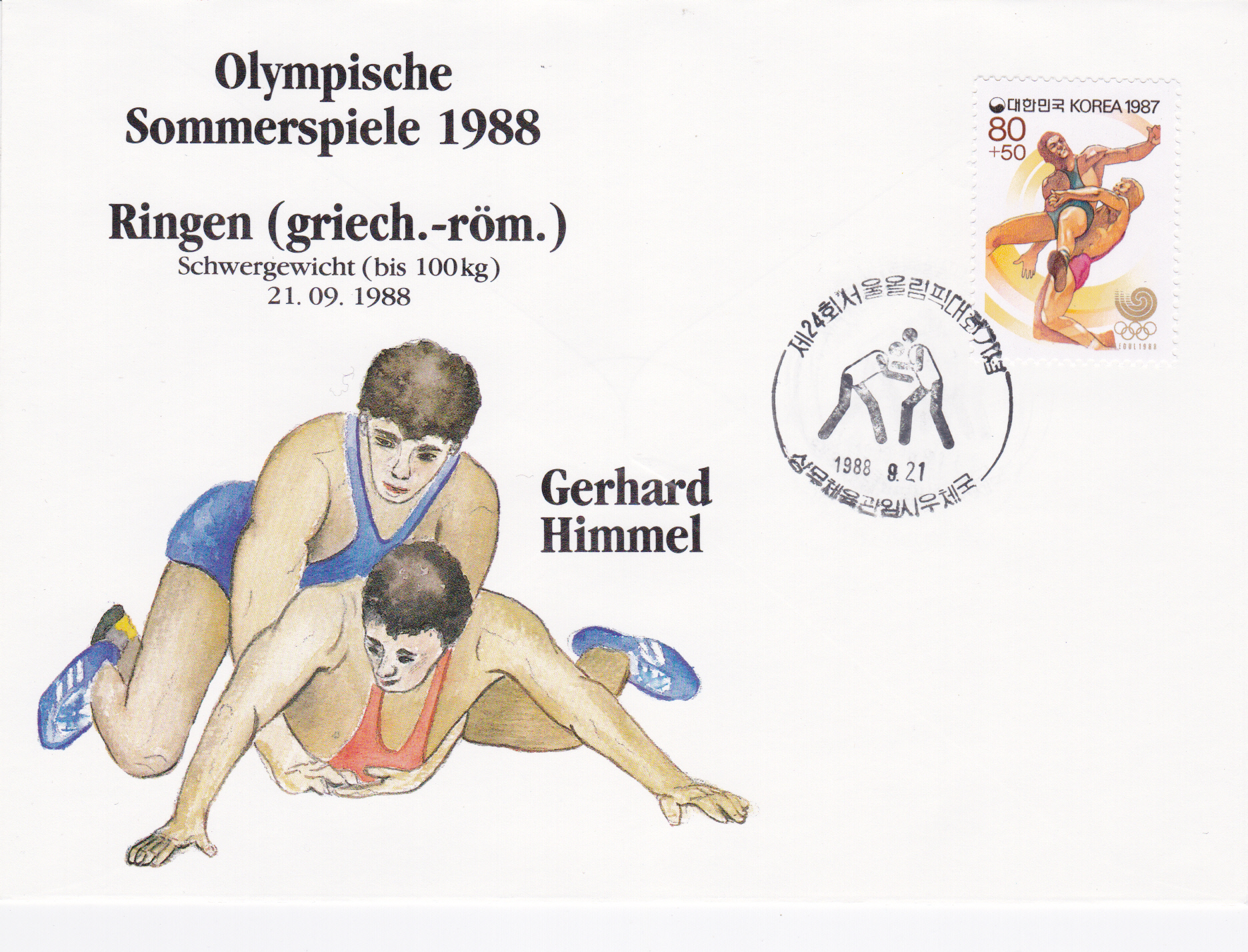 Schwergewicht (bis 100 kg) beim Ringen im Griechisch-römischem Stil fand das Finale am 21.8.1988 statt. Gerhard Himmel (geb. 12. Mai 1965 in Hanau) unterlag im Finalkampf Andrzej Wroński (Polen) und erhielt dieSilbermedaille.