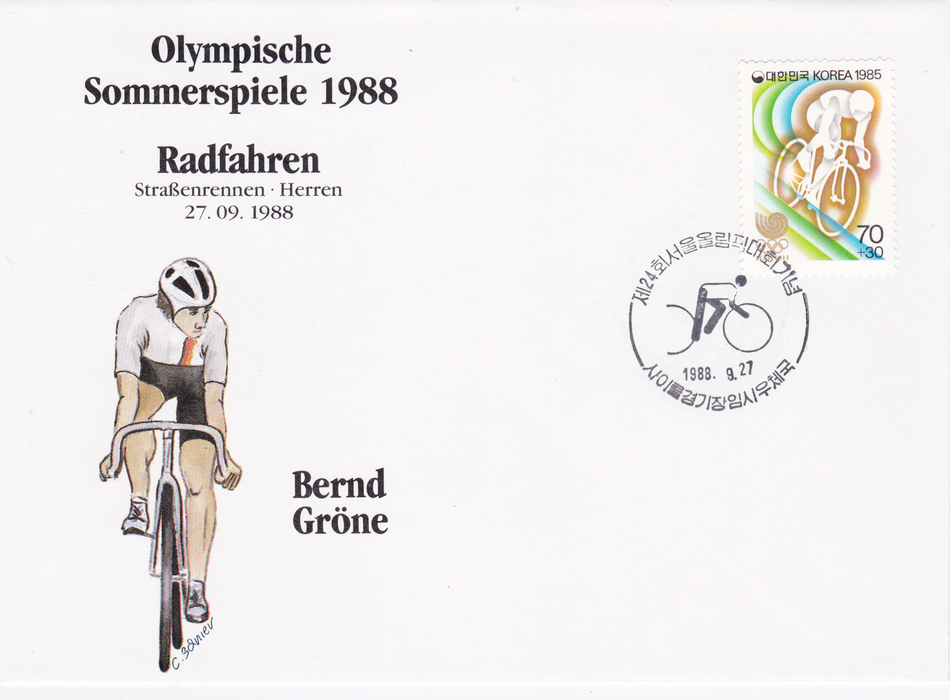 Dieser Umschlag trägt den Stempel "Radfahren" vom 27.9.1988.