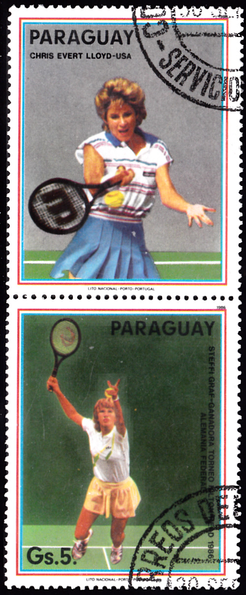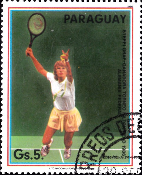 Auf einer Marke aus Paraguay (MiNr 4035) sehen wir die hier schon vorgestellte Olympiasiegerin Steffi Graf.