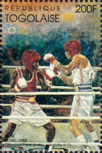 Diese Marke (MiNr 2437) zeigt den Olympiasieger Giovanni Parisi bei einem Boxkampf.