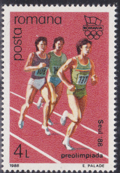 In einer Serie ist in Rumänien diese Marke (MiNr 4458) mit einer Kunstturnerin am Boden erschienen.