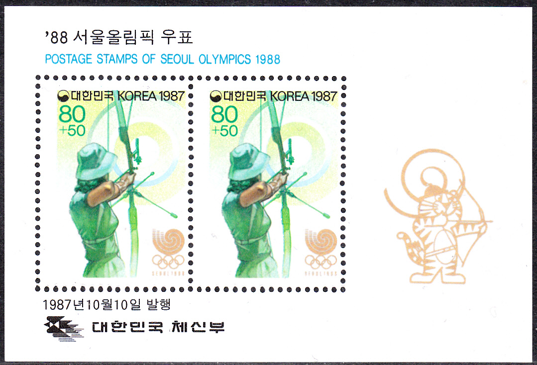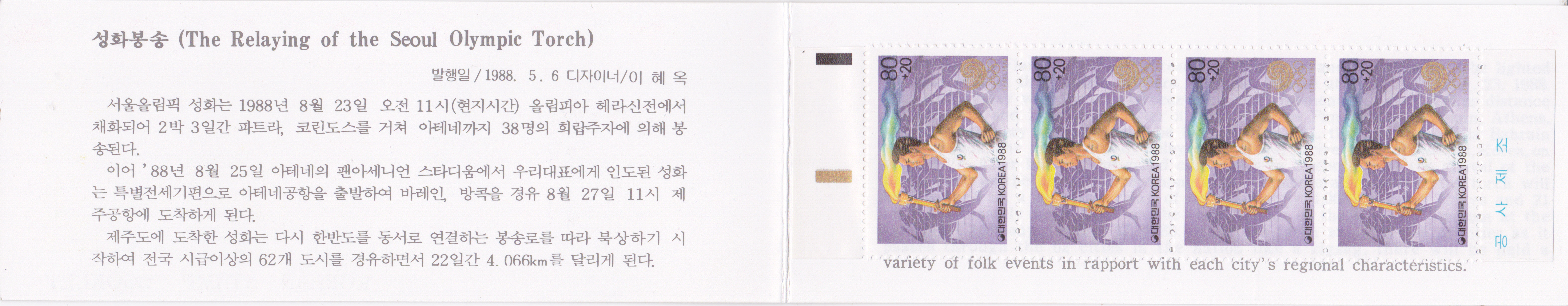 Die am 6.5.1988 in Korea erschienene Marke mit einen Fackelläufer (MiNr 1559) liegt mir auch in einem Markenheftchen vor.