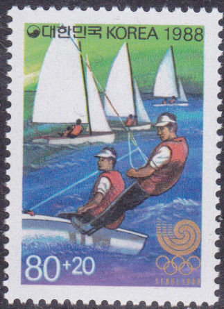 Zu der am 6.5.1988 in Korea erschienen Serie von zwei Marken reich ich hier die noch nicht gezeigte Einzelmarke (MiNr 1559) mit dem Fackelläufer nach.