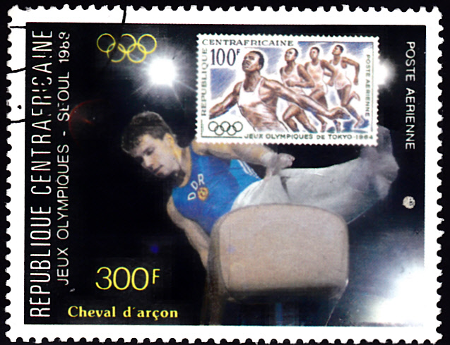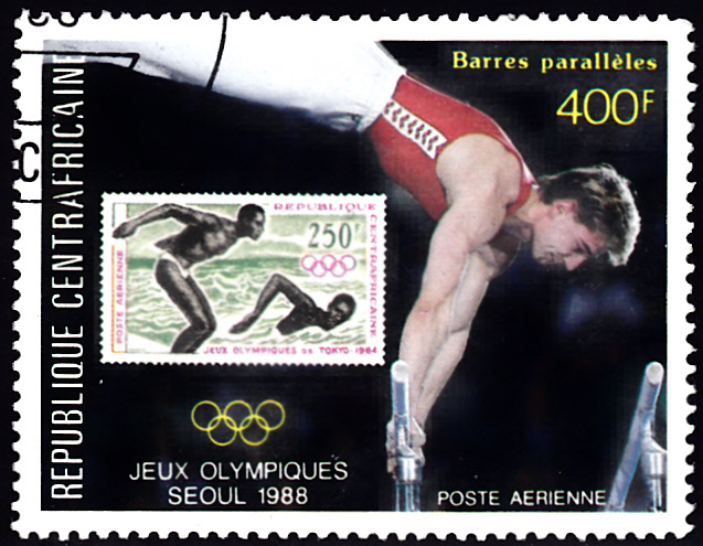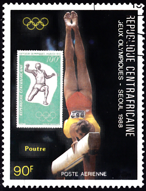 Es ist in der Zentralafrikanische Republik unter anderem eine Serie mit Motiven zum Turnen und der Abbildung von Sportmotivmarken erschienen.