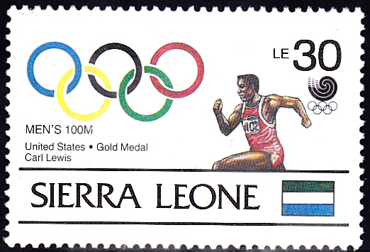 Zum Sieg von Carl Lewis in Seoul gibt es in dieser Serie aus Sierra Leone ebenfalls eine Marke (MiNr 1169).