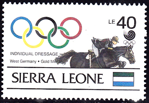 Zum Gewinn der Goldmedaille durch die deutsche Mannschaft beim Springreiten gibt es in dieser Serie auch eine Marke (MiNr 1170).