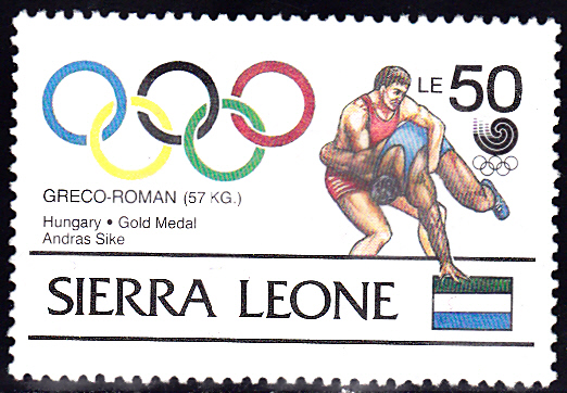 Auch für den hier schon erwähnten ungarischen Ringer András Sike, Olympiasieger im Ringen im griechisch-römischen Stil im Bantamgewicht erschien eine Marke in Sierra Leone (MiNr 1171).