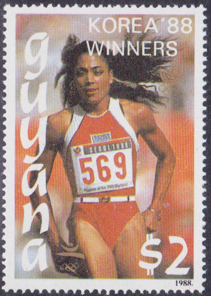 Eine Marke aus Guyana (MiNr2494) bildet die hier schon genannte Florence Griffith-Joyner ab.