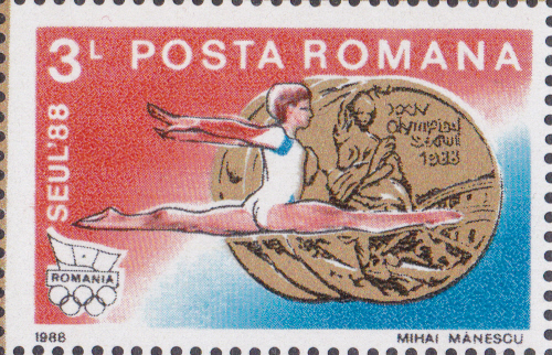 Zu ihren drei Goldmedaillen ist in Rumänien diese Marke (MiNr 4509) erschienen.