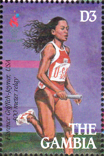 Die zwei Beiträge vorher beschrieben Goldmedaillengewinnerin Florence Griffith-Joyner wurde auch auf einer Marke aus Gambia (MiNr 2151) gewürdigt.