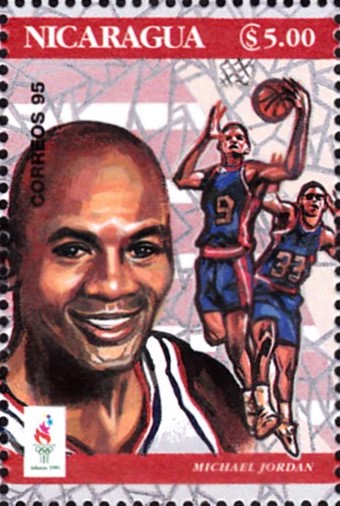 Auf einer Marke (MiNr 3634) einer Serie aus Nicaragua mit Olympiasiegern der Spiele 1992 ist der bereits hier erwähnte Basketballspieler der Mannschaft der USA, Michael Jordan abgebildet.