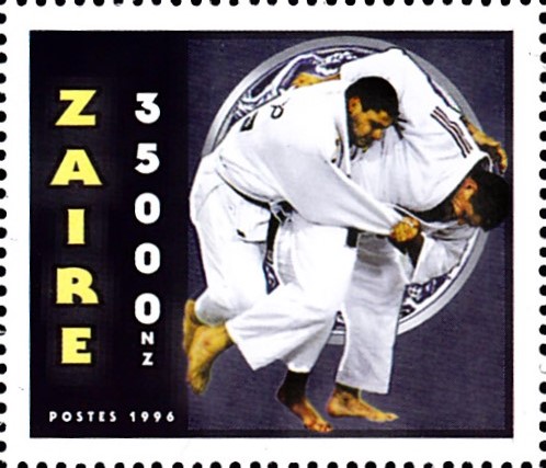 In der Serie aus aus Zaire (Kongo - Kinshasa), die schon hier teilweise gezeigt wurde, ist auch diese Marke (MiNr 1177 A) erschienen. Die Marke zeigt eine Kampfszene beim Judo mit Djamel Bouras.