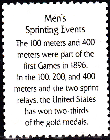 Rückseitige Kurzinformation über die Sprintwettbewerbe der Männer und die USA-Erfolge bei Olympia.
