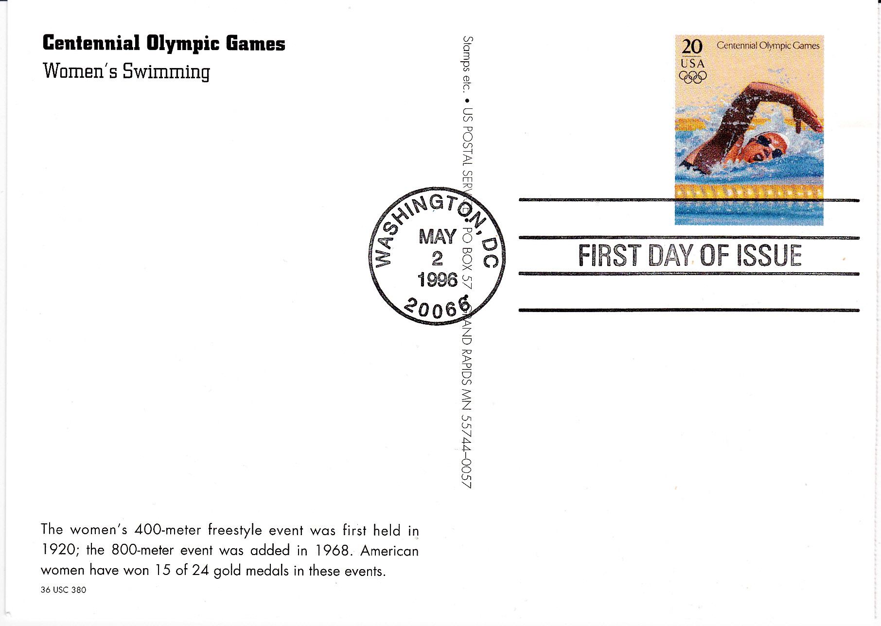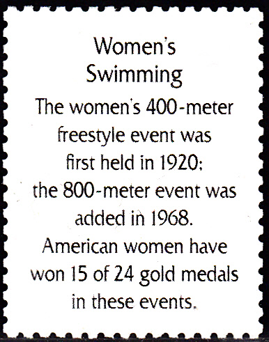 Der Text auf der Rückseite befasst sich mit dem Freistilschwimmen der Frauen über 400m und 800m bei Olympia.