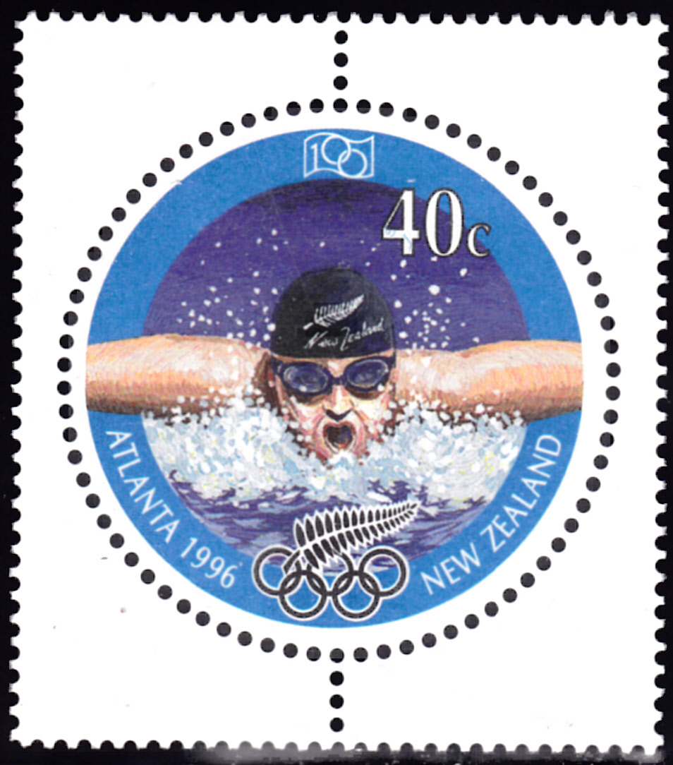 In Neuseeland ist in einer Serie zu den Spielen in Atlante diese Marke (MiNr 1526) mit einem Schwimmer erschienen.