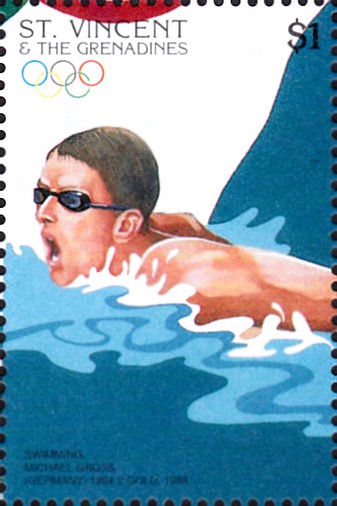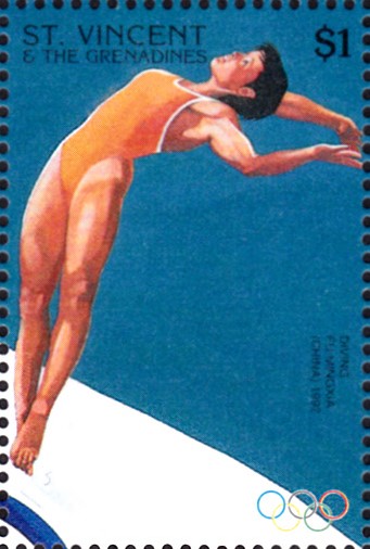 Aus einer zweiten Serie aus St. Vincent zu den Spielen in Atlanta kann ich auch noch einige Marken zeigen. Zunächst zeige ich eine Marke (MiNr 3595) mit dem sechsfachen Olympiasieger 1992 beim Turnen, Wital Schtscherba, der in der deutschsprachigen Presse Witali Scherbo genannt wird.