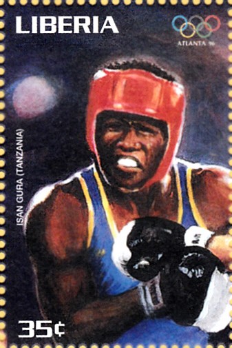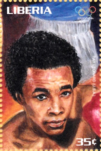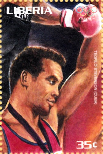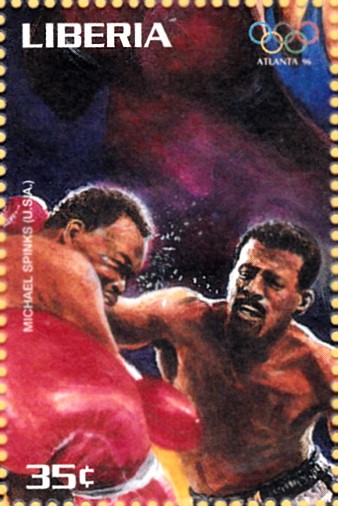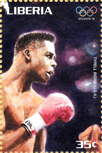 Aus der Serie aus Liberia kann ich hier einige Marken zum Thema "Boxen" zeigen. Diese Marke (MiNr 1749) zeigt Tyrell Biggs, der 1984 im Superschwergewicht die Goldmedaille gewonnen hat.