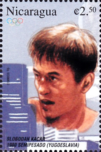 Der Goldmedaillengewinner 1980 im Halbschwergewicht Slobodan Kacar wird auf dieser Marke (MiNr 3783) vorgestellt.