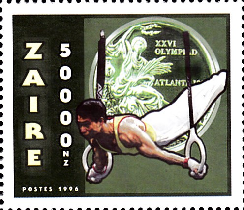 Es gibt in dieser Serie aus Zaire auch eine Marke (1187 A), die Li Xiaoshuang an den Ringen zeigt.