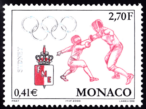 Im Juni sind in Monaco noch zwei weitere Marken zu den Spielen in Sydney erschienen. Auf der ersten Marke (MiNr 2506) sind zwei Fechter beim Kampf zu sehen.