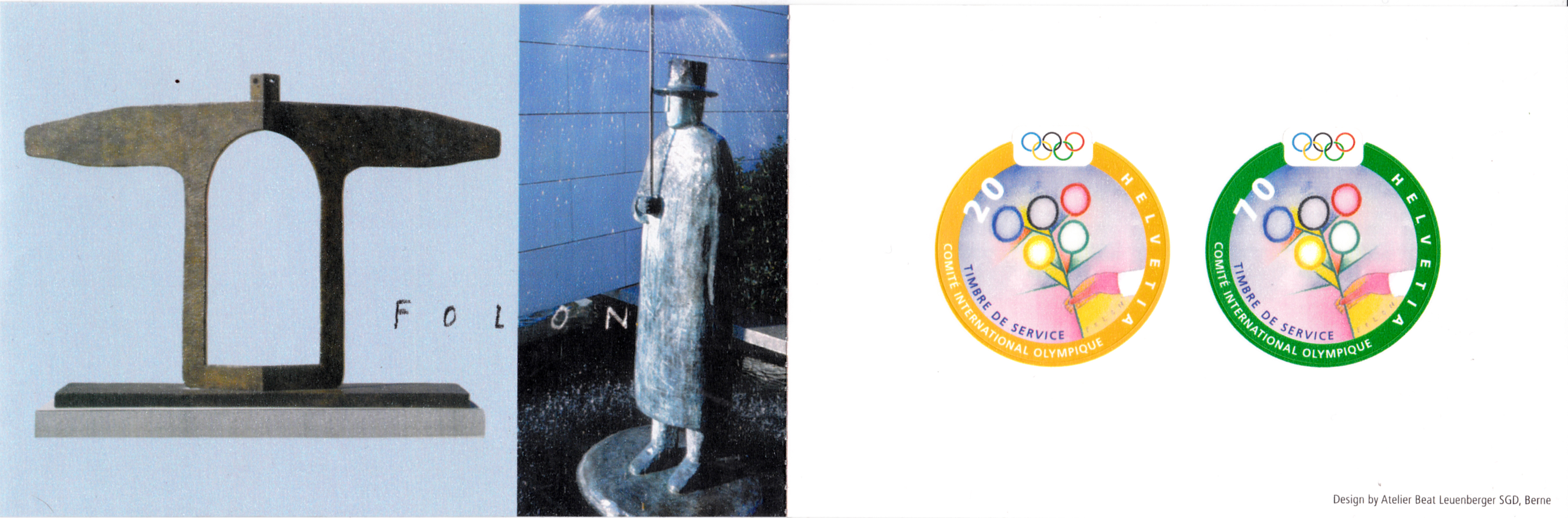 Zu den Olympischen Spielen 2000 in Sydney ist in der Schweiz für das Internationale Olympische Komitee diese selbstklebende Dienstmarke (MiNr 1) zu 20 Cent mit dem Motiv "Hand hält Blume mit olympischen Ringen" erschienen.