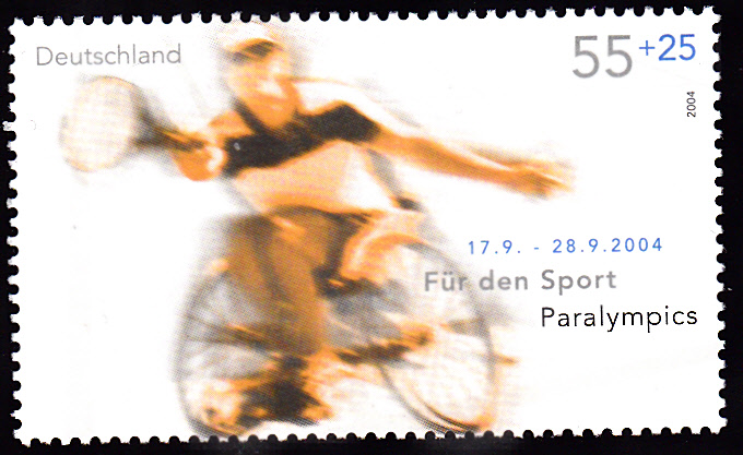 Die Deutsche Post verausgabte zu den Paralympischen Sommerspielen 2004 in der Serie "Für den Sport" eine Marke (MiNr 2384) mit einem Spieler beim Rollstuhltennis.