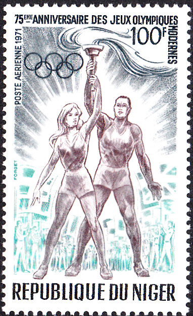 Auch im Niger sind Marken zu "75 Jahre Olympische Spiele der Neuzeit" erschienen.