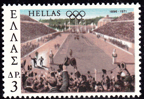 Auch in Griechenland sind 1971 zum Jubiläum "75 Jahre Olympische Spiele der Neuzeit" erschienen. Hier die Marke zu 3 Drachmen (MiNr 1072) mit der Abbildung des Athener Stadions von 1896.