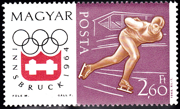 Einen Eisschnellläufer sehen wir auf dieser Marke (MiNr 1981 A) der ungarischen Serie.