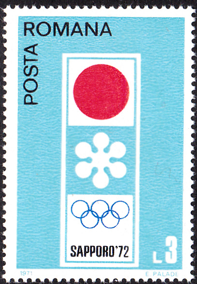 Eine Marke aus der rumänischen Ausgabe zu den Winterspielen 1972 (MiNr 2989) zeigt das Emblem der Spiele in Sapporo.