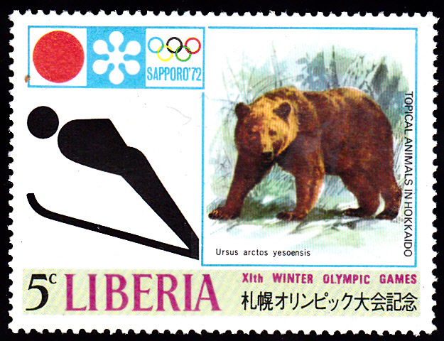 In Liberia erschien in einer Serie zu den Winterspielen 1972 diese Marke (MiNr 812 A ) mit einem Piktogramm für das Skispringen.