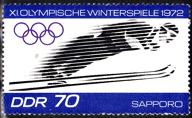 Am 7.12.1971 erschien in der DDR eine Serie zu den Olympischen Spiele in Sapporo mit dieser Marke zu 70Pf (MiNr 1730) mit der Abbildung eines Skispringers.