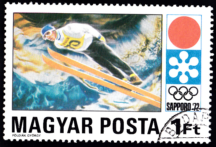 Hier eine Marke aus Ungarn (MiNr 2723 A) zu den Winterspielen 1972 mit einem Skispringer.