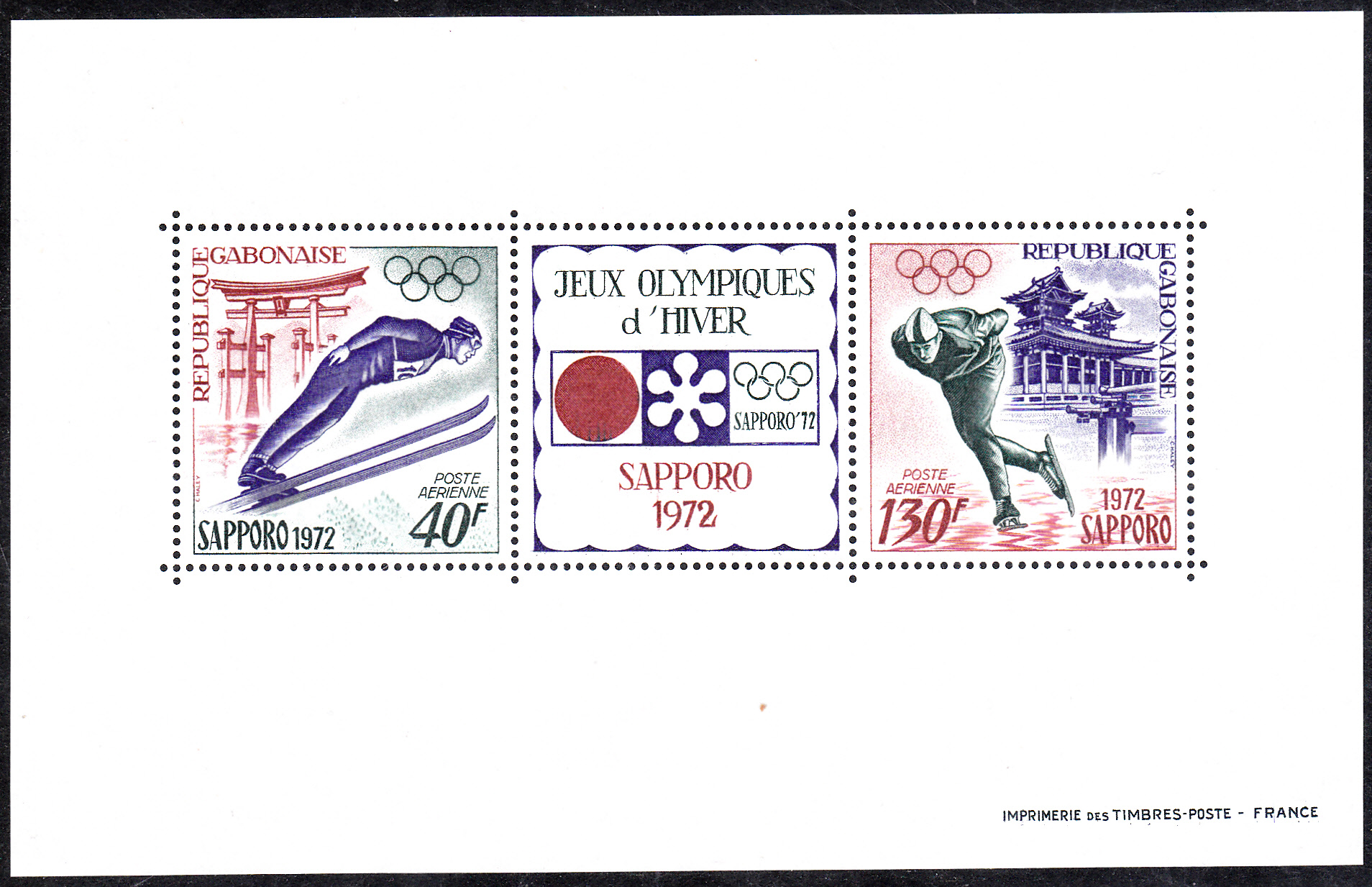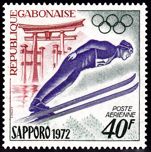 In Gabun ist zu den Winterspielen 1972 diese Marke (MiNr 454) mit einem Skispringer erschienen.