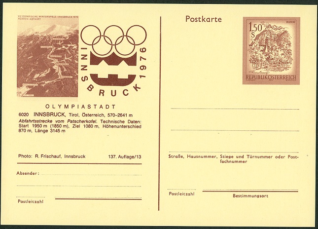 Hier eine ungebrauchte Ganzsache mit Informationen zum Olympischen Eisstadion 1976.