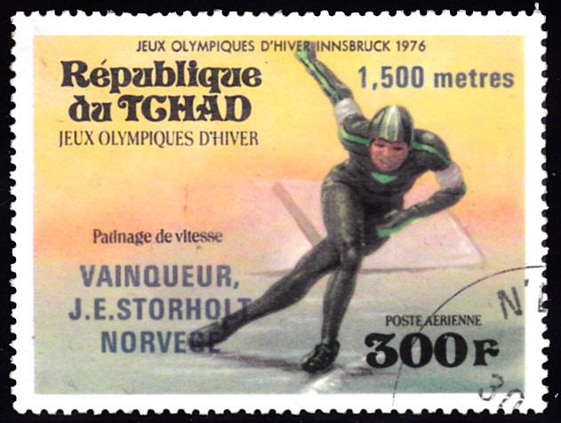 Aus der Serie aus dem Tschad kommt auch diese Marke zum Olympiasieg von Jan Egil Storholt.
