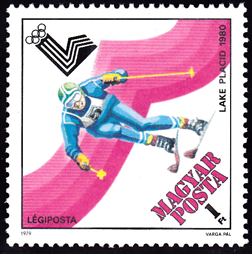 Auch in der Mongolei sind Marken zu den Spielen 1980 erschienen. Hier eine Marke (MiNr 1271) mit einem Skilangläufer.