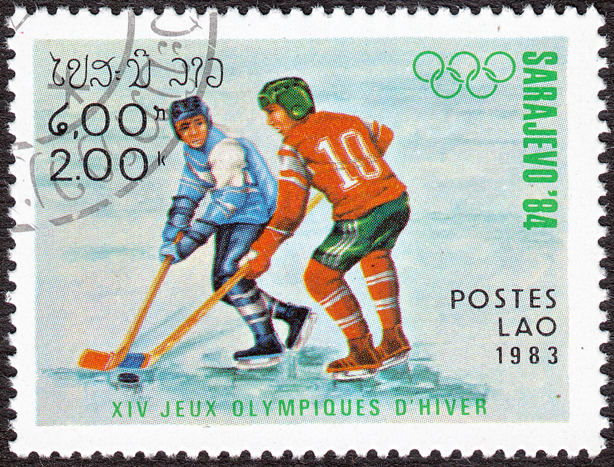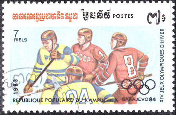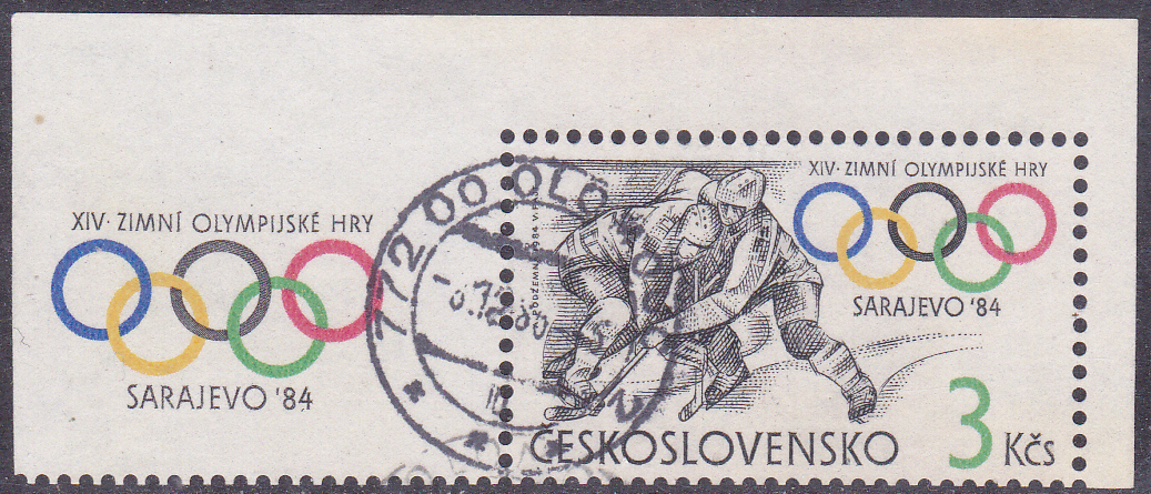 In der Tschechoslowakei ist zu den Winterspieken 1984 eine Marke mit einer Spielszene beim Eishockey (MiNr 2752) erschienen. Diese gibt es aus dem Bogen oder einer Blockausgabe. Hier zeige ich ein Marke aus einem Block (MiNr Block 57), zu erkennen an den noch vorhandenen Blockränder.