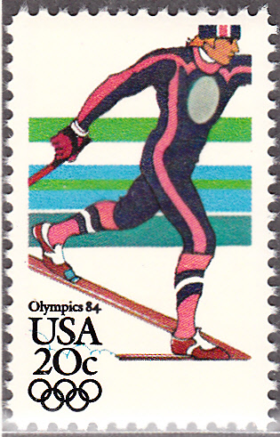 Zu den Olympischen Spielen 1984 in Sarajewo erschien in den USA auch eine Marke mit einem Skilangläufer im Markenbild (MiNr 1673).